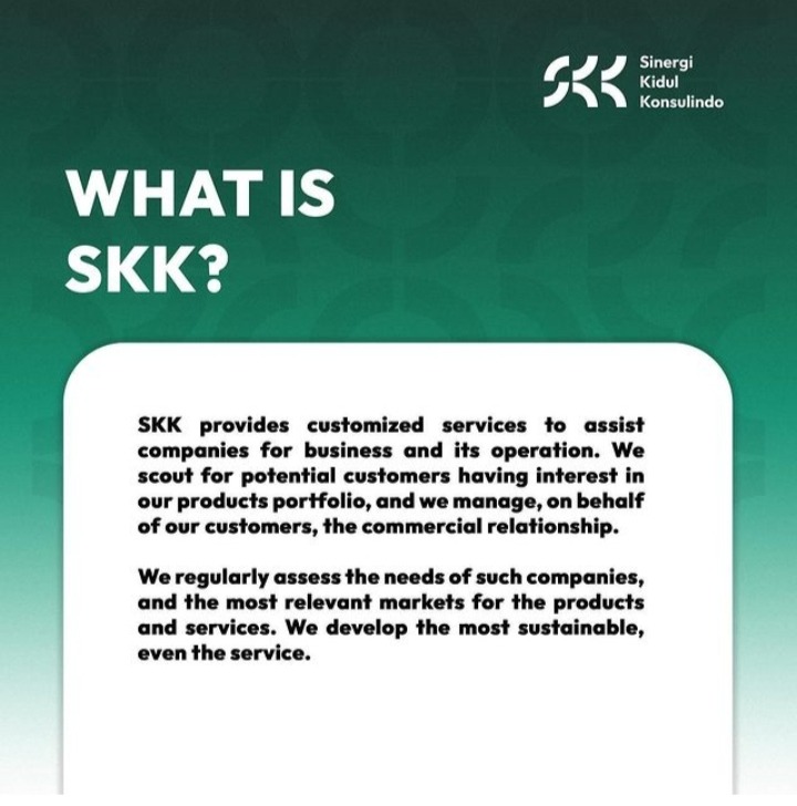 SKK provides customized services to assist companies for business and its operation. We scout for potential customers having interest in our products portfolio, and we mange, on behalf of our customers, the commercial relationship.